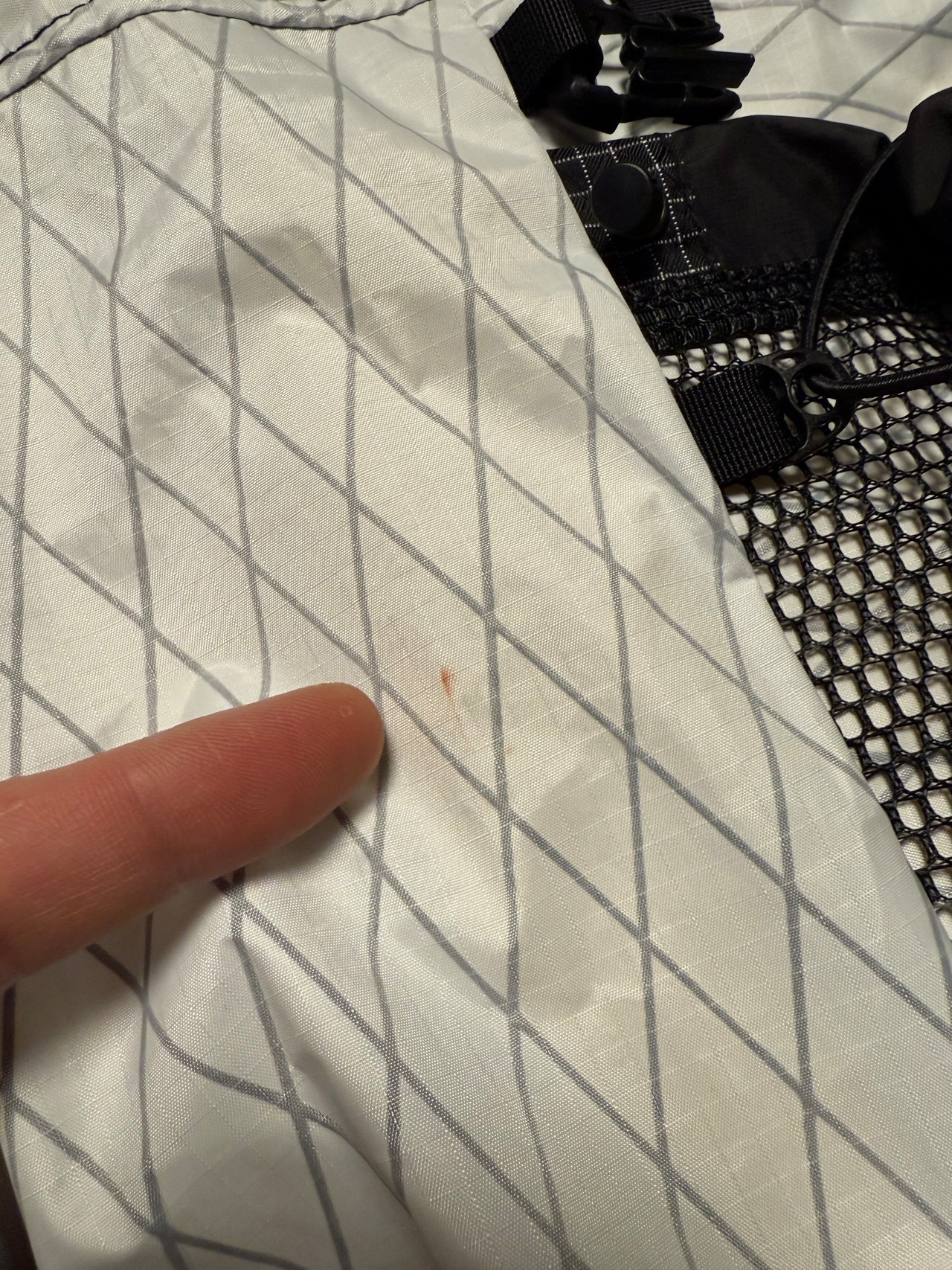 →バックパックを背負った際の左側側面に赤茶色の何かを擦った後があります。