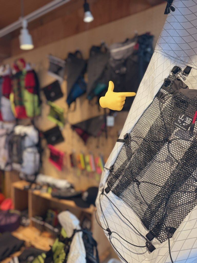 ショックコードはフロントポケット大外に備えていますので山行中に濡れたギアを乾かすときや何らかの大きな荷物を固定する際に活躍します。