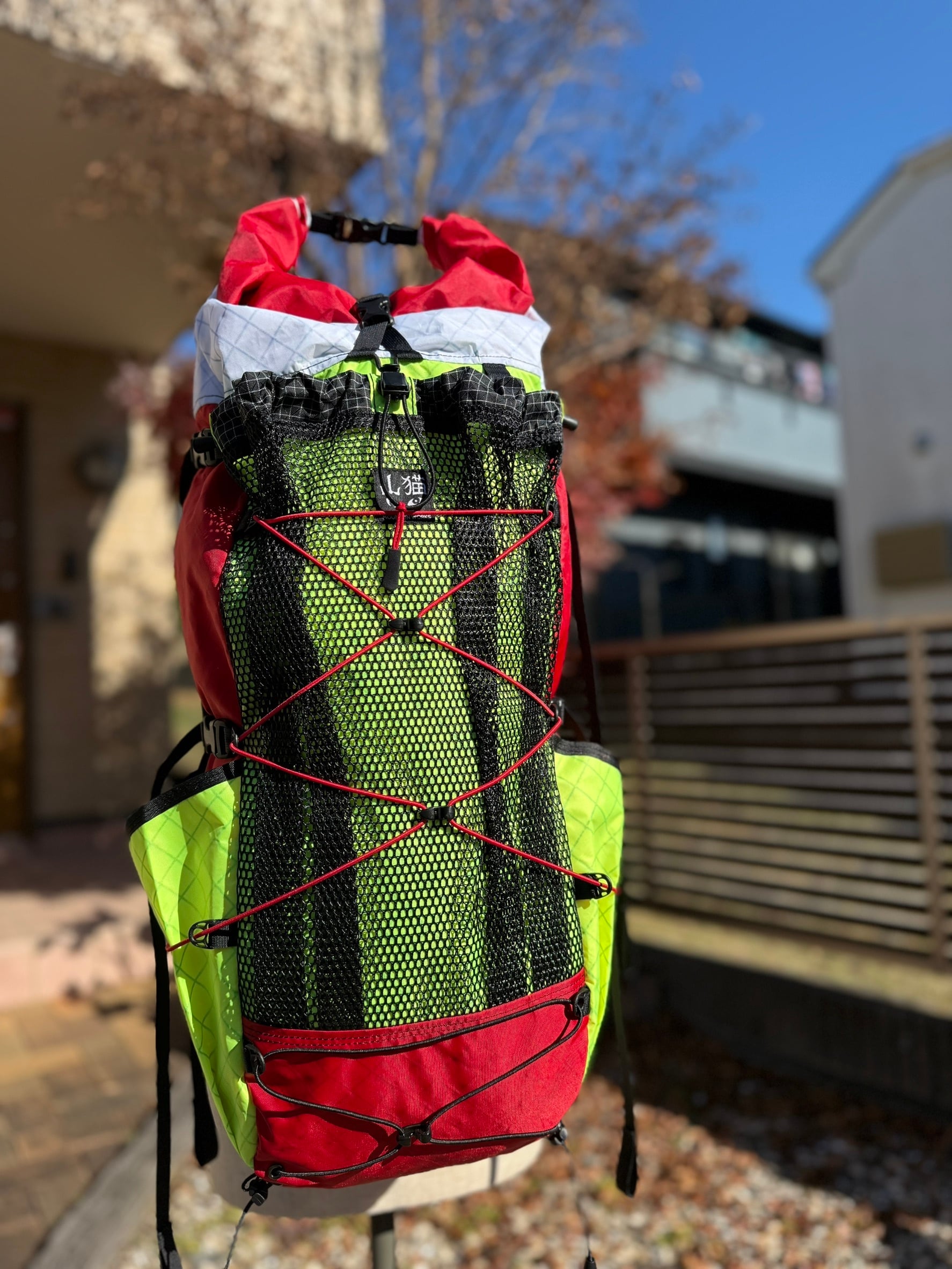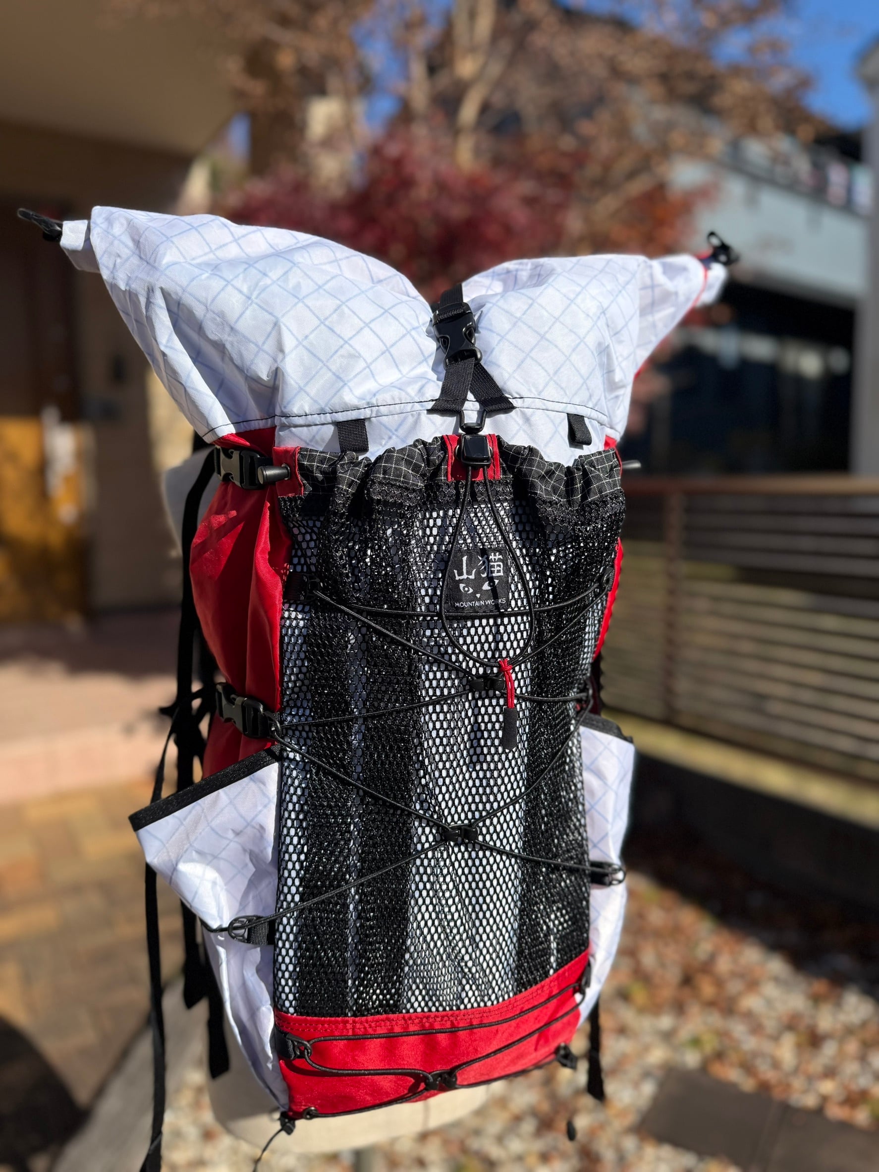 ホワイト×レッド、イエロー×レッドのどちらも、ロールアップ部分の配色を「ホワイト/レッド」にしてあるのでロールする方向でバックパック上部のカラーが変更できます。