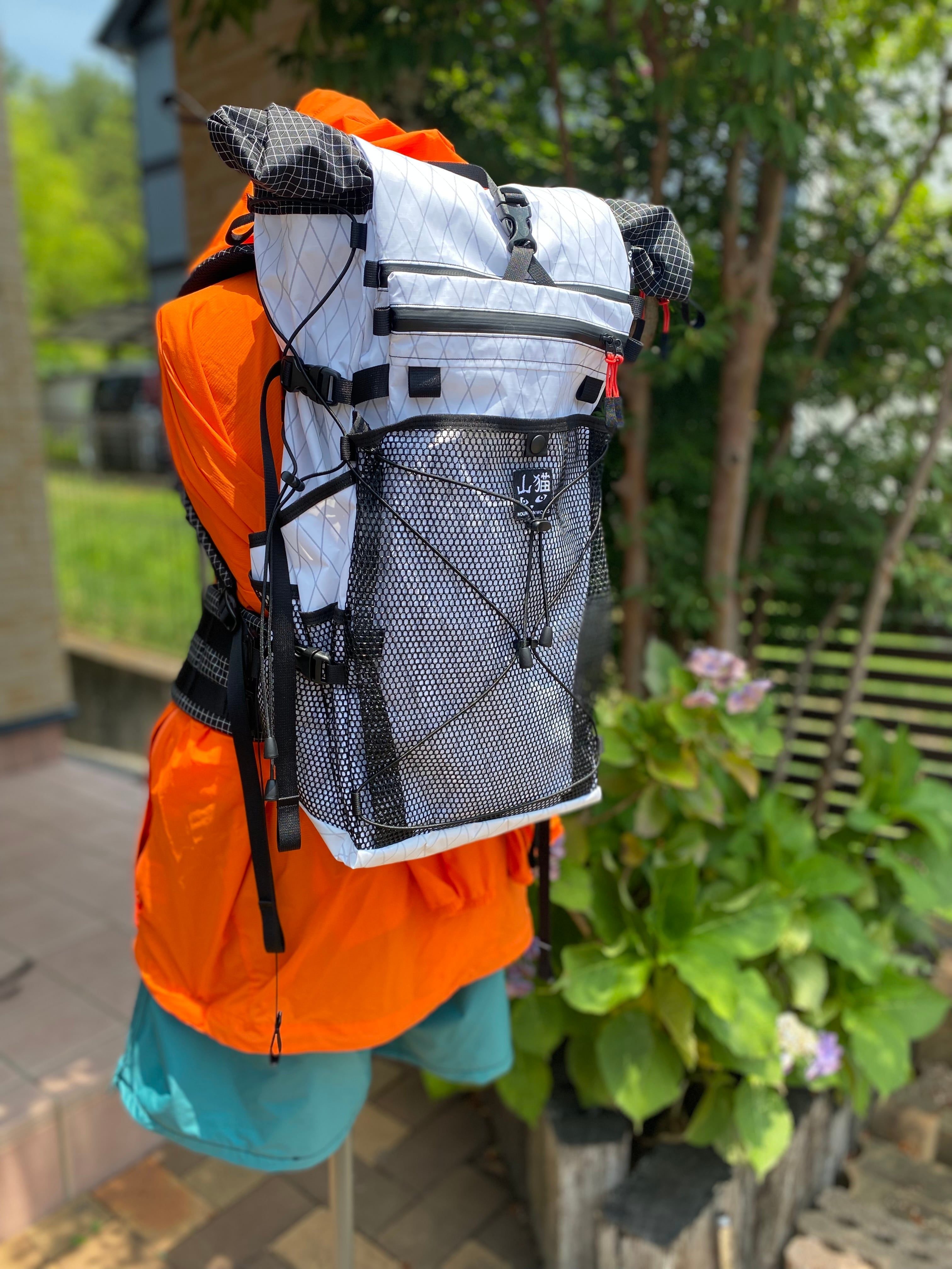 素材はアメリカ「dimension-polyant社」のX-pacとLiteskinを主に使用、ショルダーベルトや背面にDyneema Gridstopという強度ある物を使用しております。